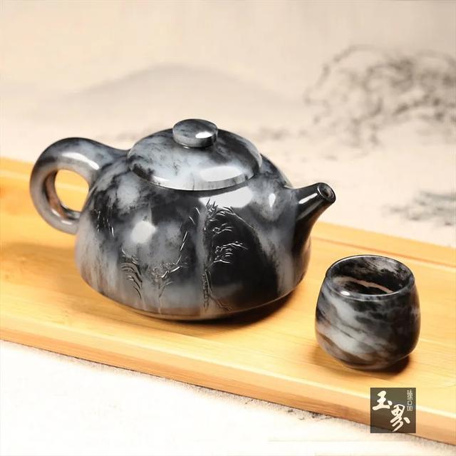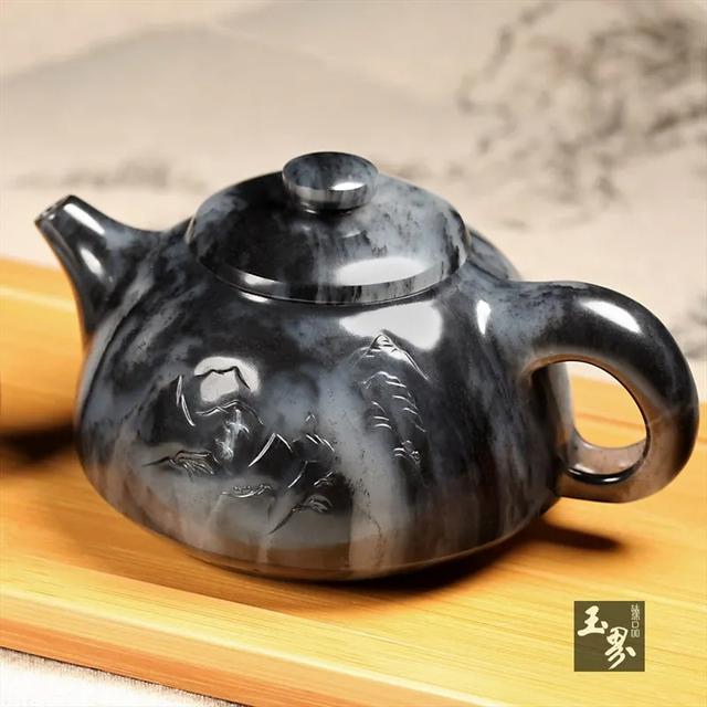 ▲墨玉子料-山水套壺 | 玉器編號:165577