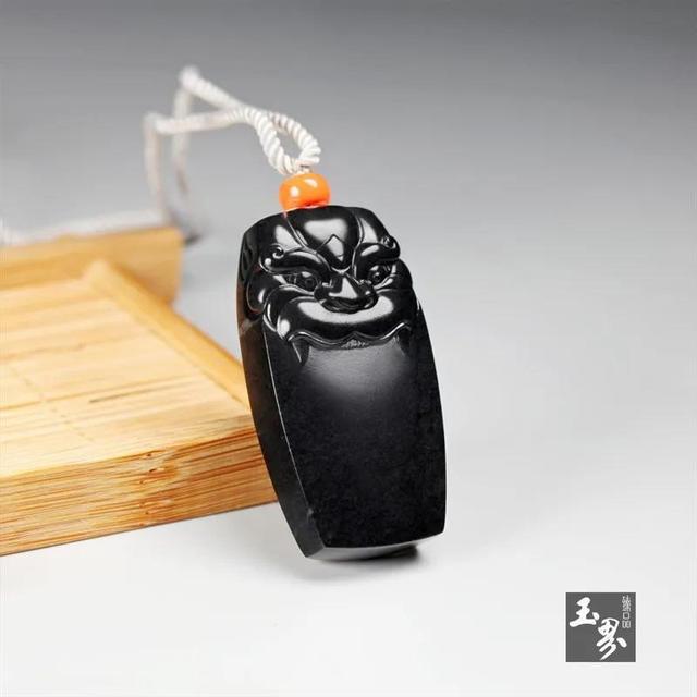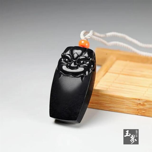 ▲墨玉子料-獸面牌 | 玉器編號:167332