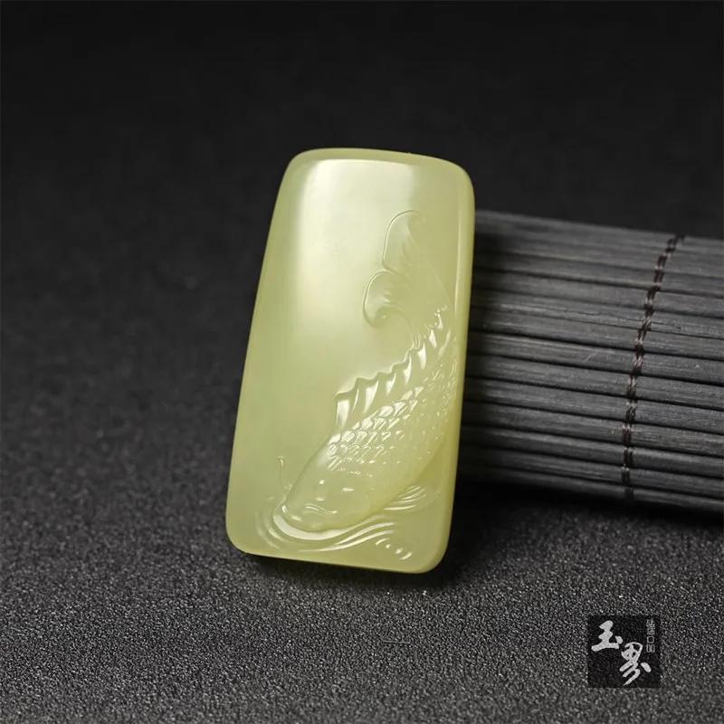 古人臨水而居,魚自古以來就和人們的生活息息相關(guān),在玉雕題材里也是經(jīng)久不衰。以魚作為題材的玉雕作品不僅因?yàn)樗脑⒁饷篮茫惨驗(yàn)轸~自身的線條自由柔順,在水中游動(dòng)時(shí)如行云流水,充滿了自然和諧的藝術(shù)美感。
