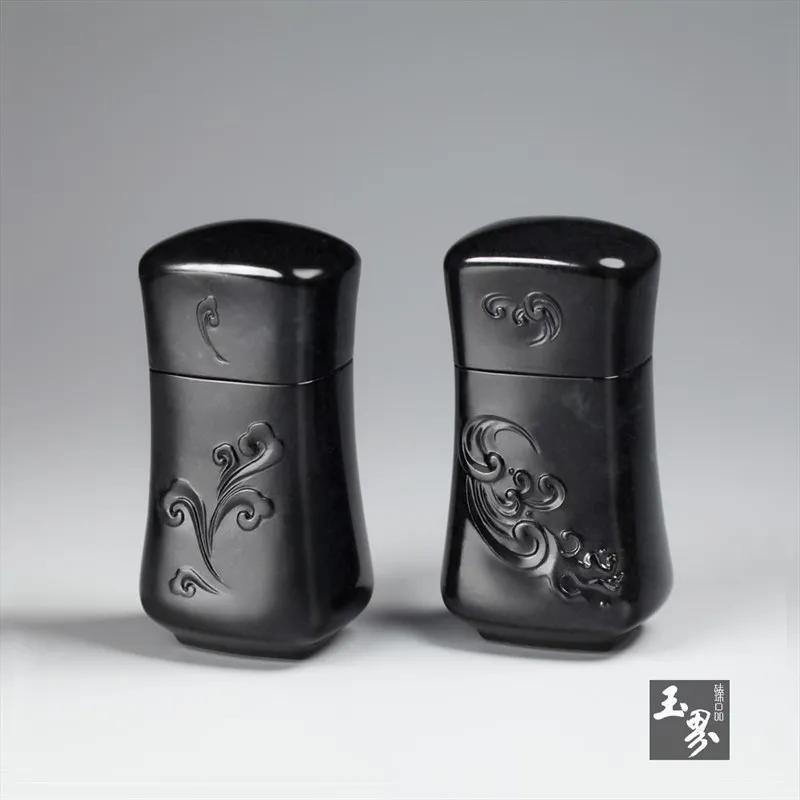 ▲墨玉-行云流水香丸筒(對) | 玉器編號:167586