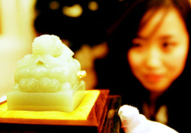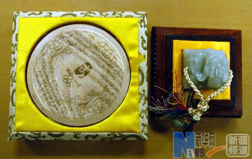 昨天上午,北京奧組委正式對外宣布了這一消息。在北京奧運會會徽及奧運徽寶誕生兩年后,經北京奧組委授權制作的“北京奧運徽寶典藏版”以與“北京奧運徽寶”同樣產地的中國新疆和田青白玉為材料,按照“北京奧運徽寶”原大二分之一比例復制而成,全球限量發行2008方,每方售價56000元人民幣。