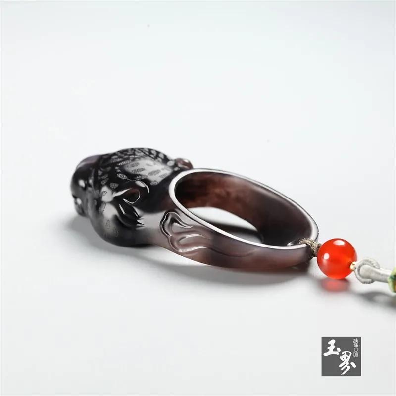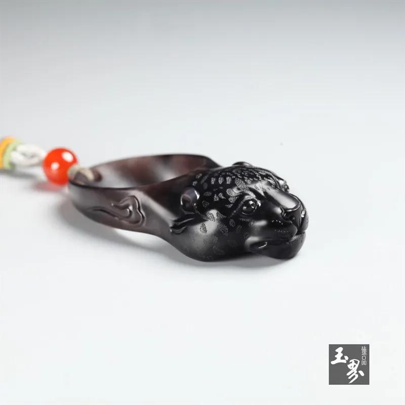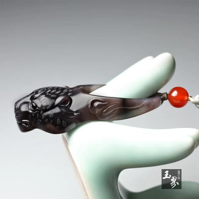 獵豹雕刻,除了獵豹本身的細節處理以外,其他修飾性的周邊也要進行處理,以此來突出獵豹。在動物世界中,黑豹是更加稀有的豹子。而豹的顯著性特征則是豹斑。在雕刻時斑點有時加重有時減少,這樣會讓身形更顯立體,而斑點的排布看上去很隨意,實際上卻遵循著特定順序,尤其要考慮彼此的間距。單雕獸首相對于整個形體的獸雕件更考驗玉雕師對于細節的推敲。