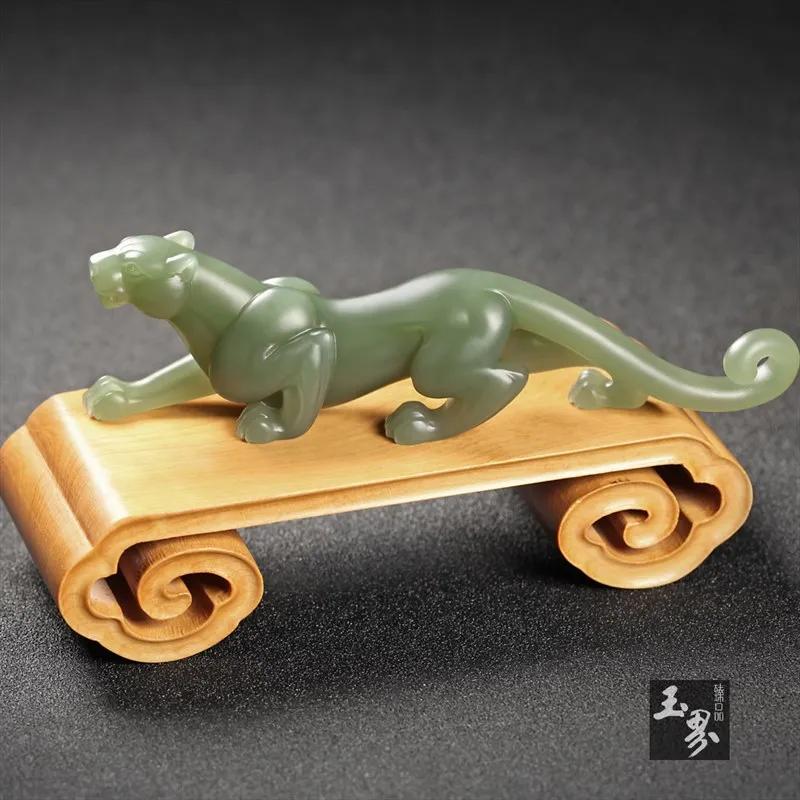 動物玉雕其造型取材于自然界中各種獸類的形象。這種造型的玉雕要求十分嚴苛,比例結構準確,符合各種獸類的解剖,肌肉豐滿健壯,形象動態自然,特征明顯,五官形象逼真。最常見的就是虎、牛、狼、熊、豹等真實存在于自然界中的動物造型。其中豹題材在動物玉雕中出鏡率名列前茅。