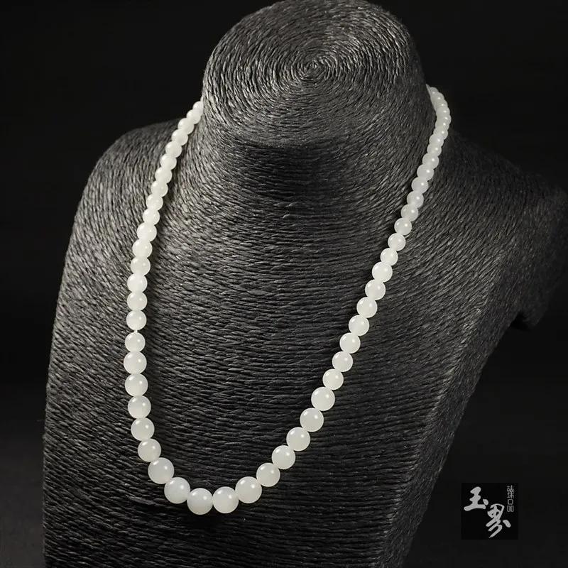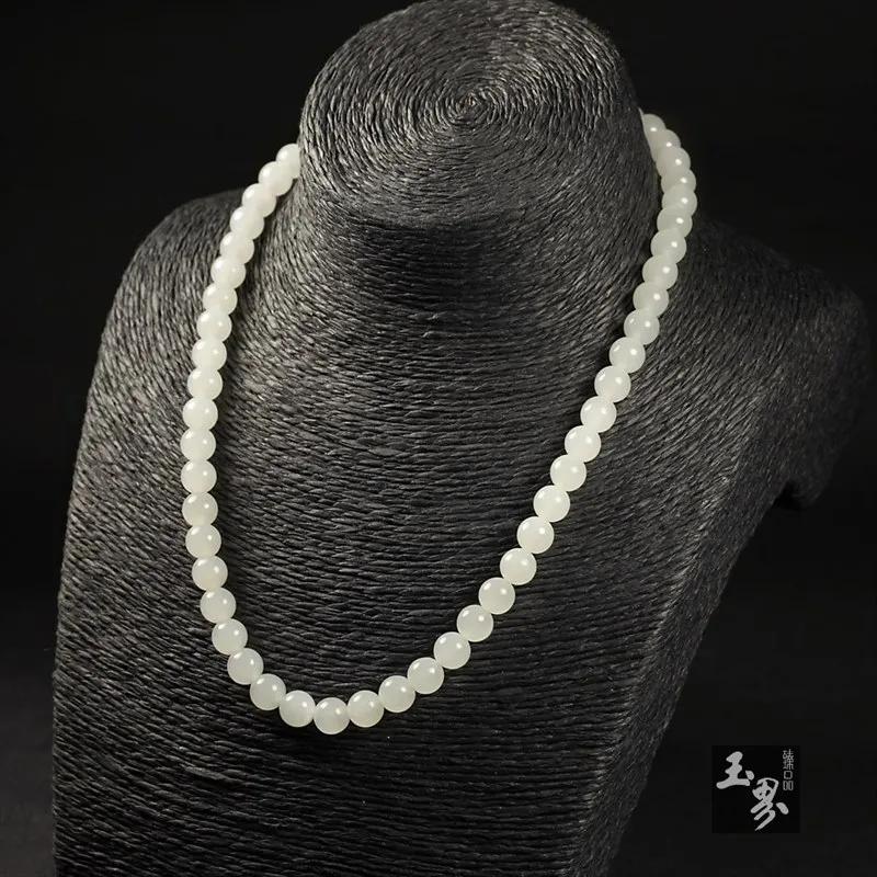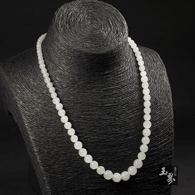 ▲羊脂白玉-圓珠(塔珠)項鏈 | 玉器編號:161582