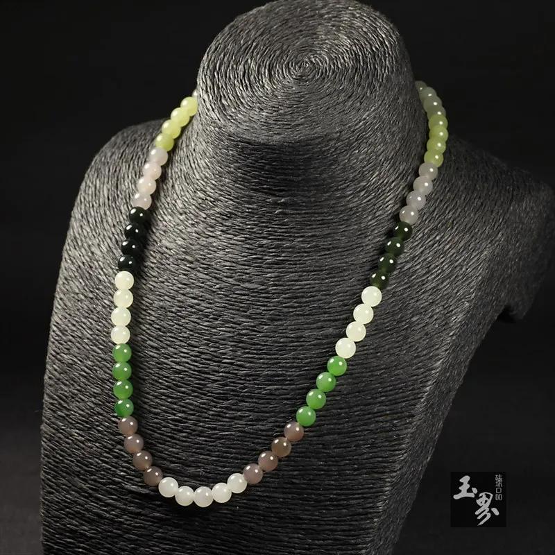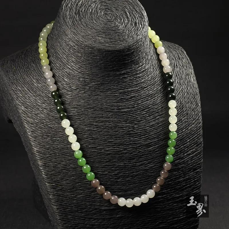 ▲和田玉-七彩圓珠項鏈 | 玉器編號:161579