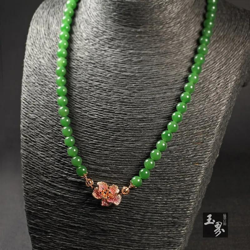 ▲(18k玫瑰金紅寶)碧玉-圓珠項鏈 | 玉器編號:163329