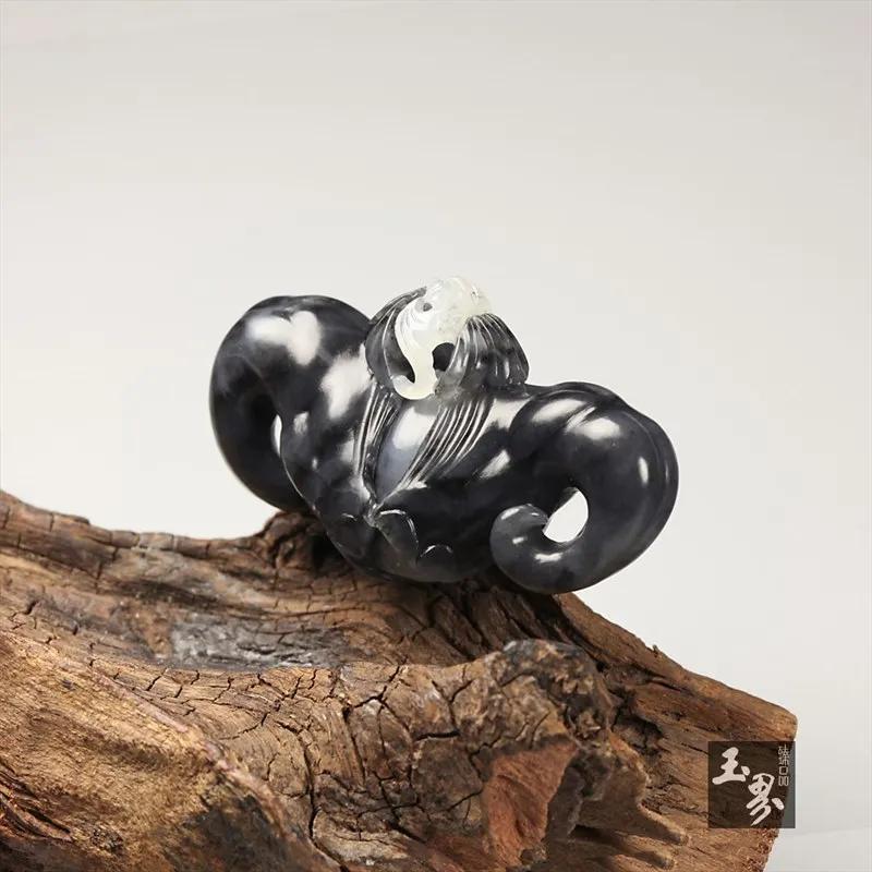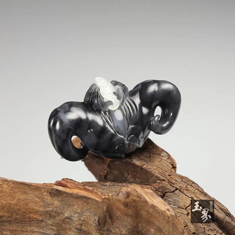 ▲墨玉青花子料-巧雕福臨 | 玉器編號:78711