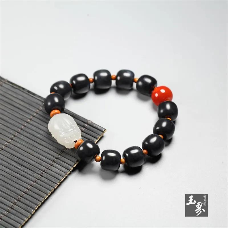 在現代手串中,由于材源和社會風尚的演變,沉淀下來比較常見的串飾材料有100多種,如:玉珠、木珠、瓷珠、骨珠等等。手串大多是將這些原料直接加工成珠子,除了有些帶雕工的外,基本不考究其藝術性,所以珠子的材質就成了衡量手串價值的重要標尺。對于玩家來說,能夠自由選配一串自己心儀的佛珠手串,是最高興不過的事了。