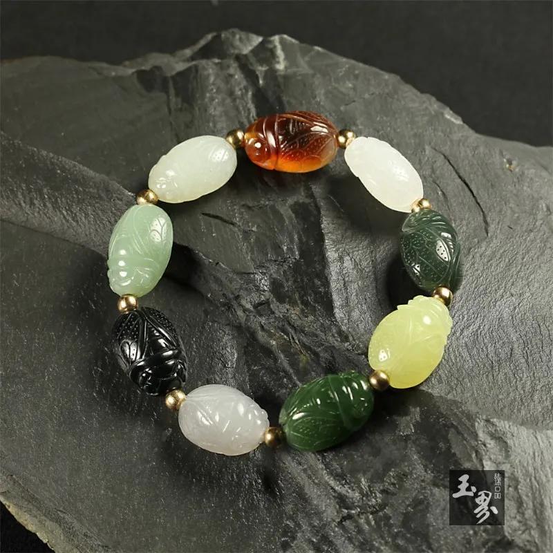 ▲和田玉-蟬形手鏈 | 玉器編號:147610