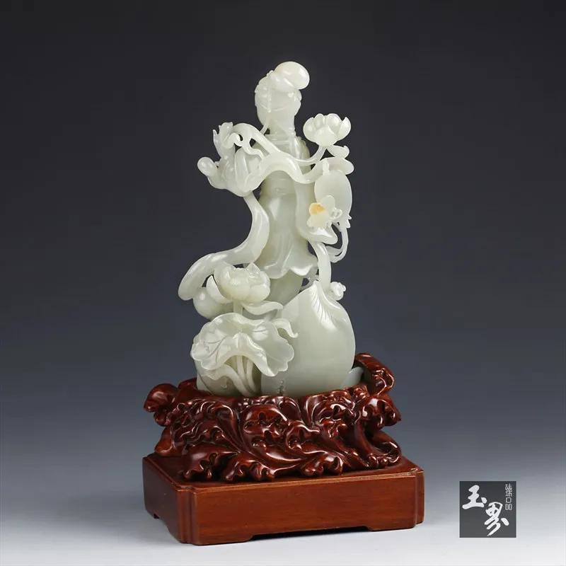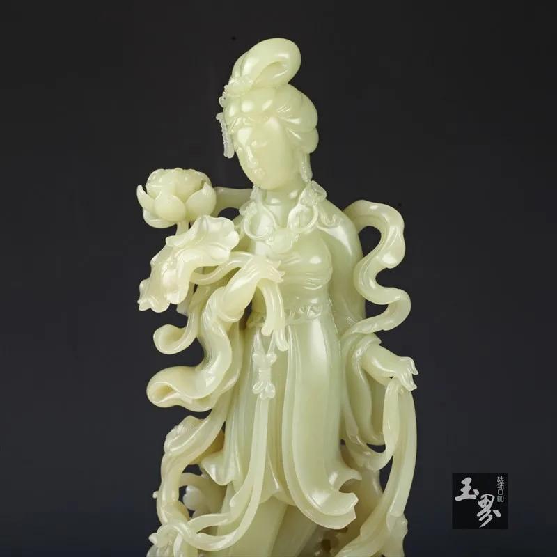 其實仕女題材屬于人物雕的一個分支,講究造型和用料恰當(dāng),呈現(xiàn)身段秀麗、臉美、喜相、手拿物俏氣真實之感。被選用雕刻仕女題材的和田玉,也有著嚴格的要求,一般選擇的質(zhì)地細膩、白皙、油脂都比較非常好的和田玉,利用和田玉的滋潤的質(zhì)地,展現(xiàn)出仕女細膩潔白的皮膚。