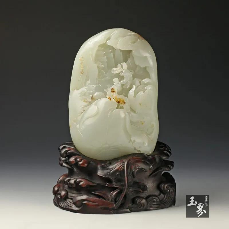 ▲ 白玉籽料山子雕-采蓮曲 | 玉器編號:143053