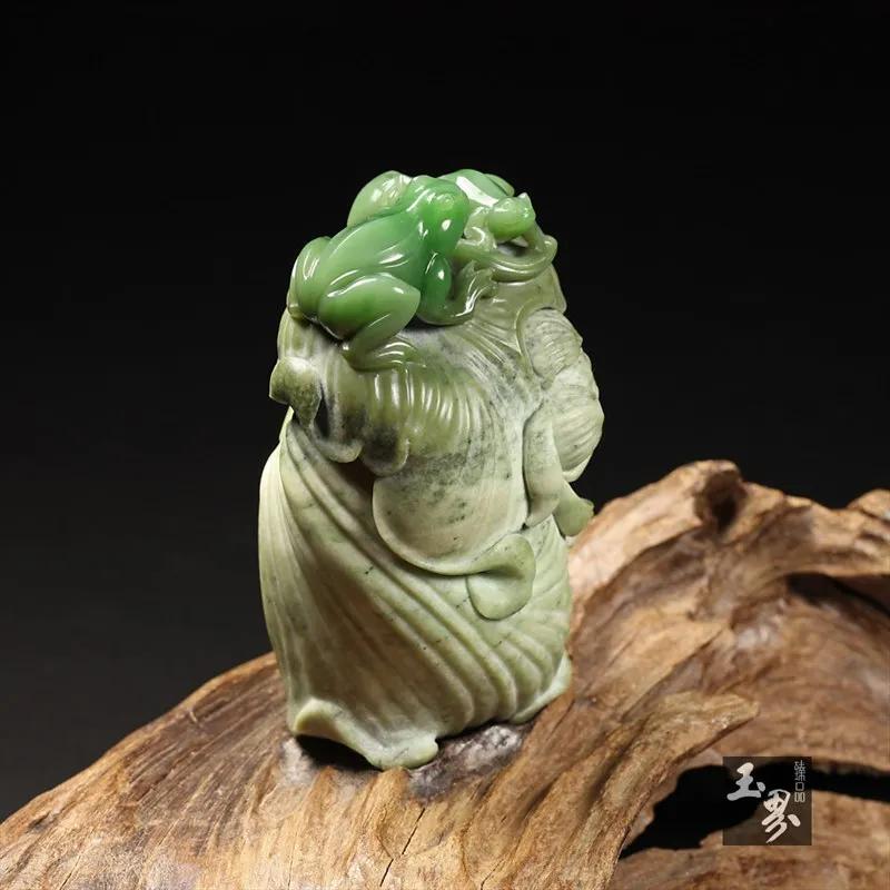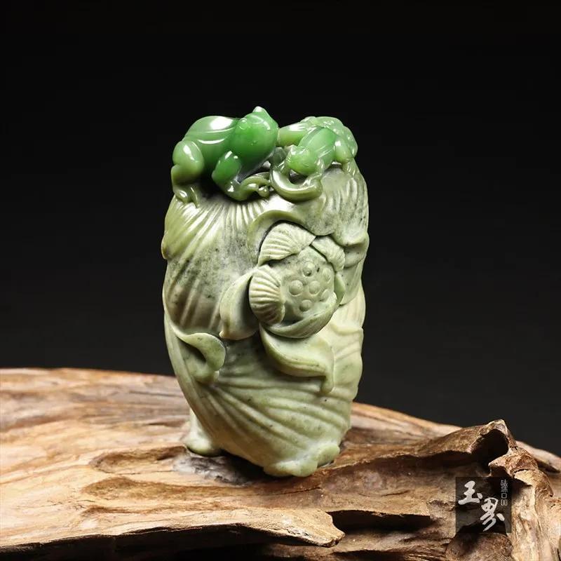 ▲ 碧玉巧雕擺件-荷塘蛙趣 | 玉器編號:155956