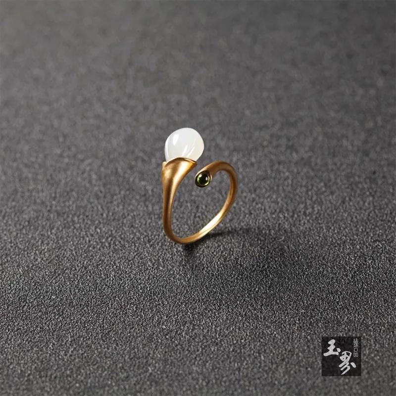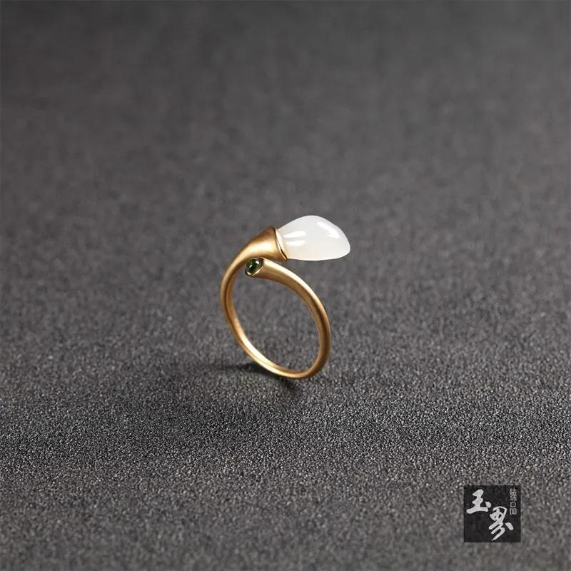 ▲ 18k金嵌寶白玉-蘭花戒指 | 玉器編號:167651