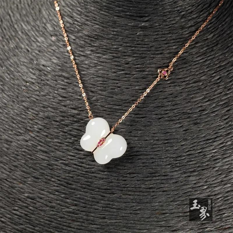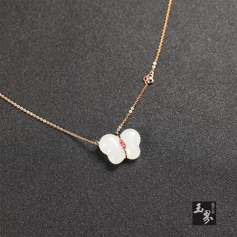 ▲ (18k玫瑰金嵌寶)白玉-蝴蝶項鏈 | 玉器編號:167679