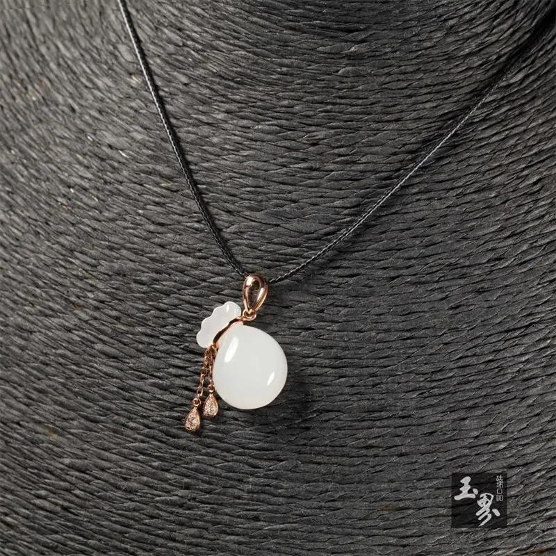 ▲ (18k玫瑰金鑲鉆)白玉-福袋 | 吊墜玉器編號:167677