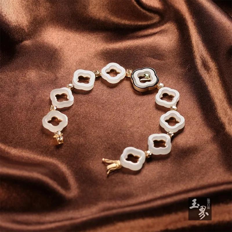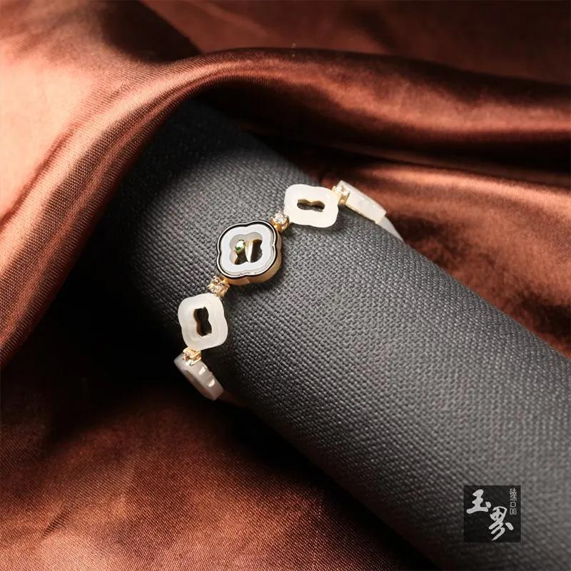 ▲ 18k金嵌寶白玉手鏈 | 玉器編號:166943