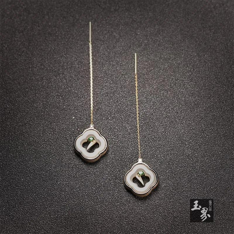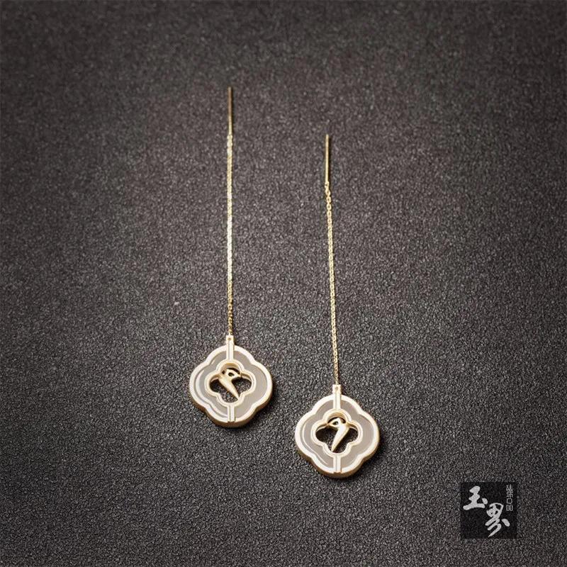 ▲ 18k金鑲白玉耳墜 | 玉器編號:166945