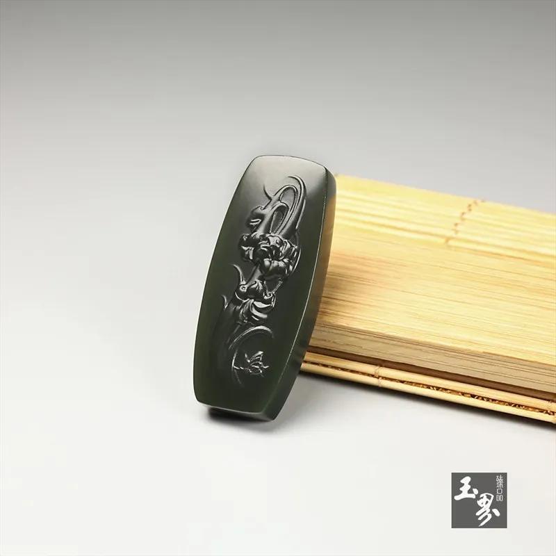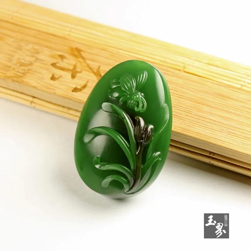 ▲ 碧玉-巧雕蘭花牌 | 玉器編號:167452
