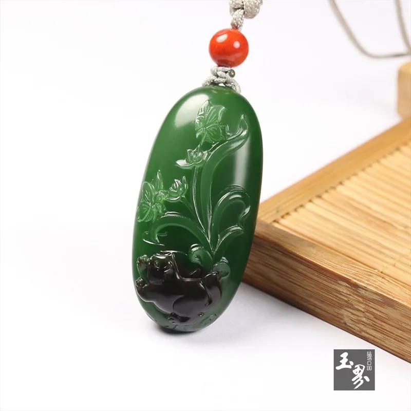 ▲ 碧玉巧雕掛件-耄耋富貴 | 玉器編號:155541