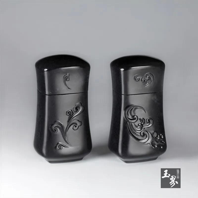▲ 墨玉-行云流水香丸筒(對) | 玉器編號:167586