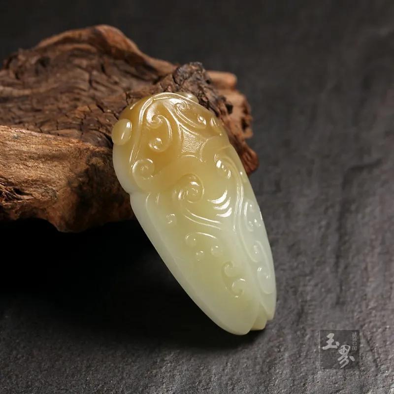 ▲ 糖白玉-紋飾蟬形佩 | 玉器編號:123674