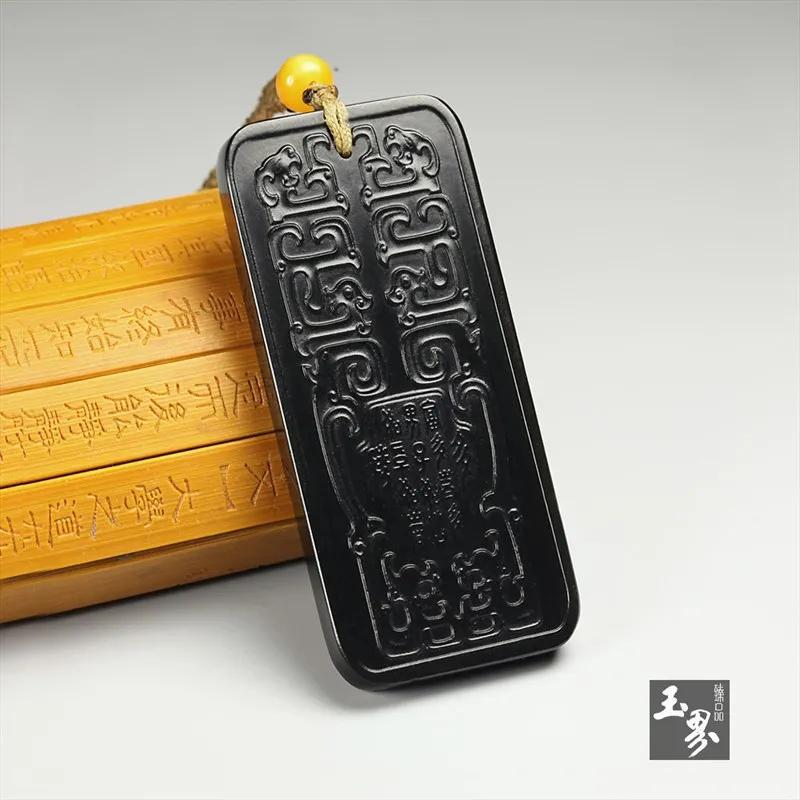 ▲ 黑碧玉-龍鳳紋飾牌 | 玉器編號:115538