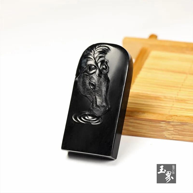 ▲ 墨玉牌-飲水馬 | 玉器編號:154281