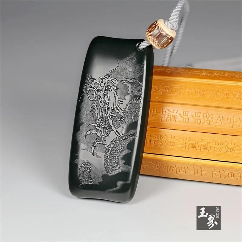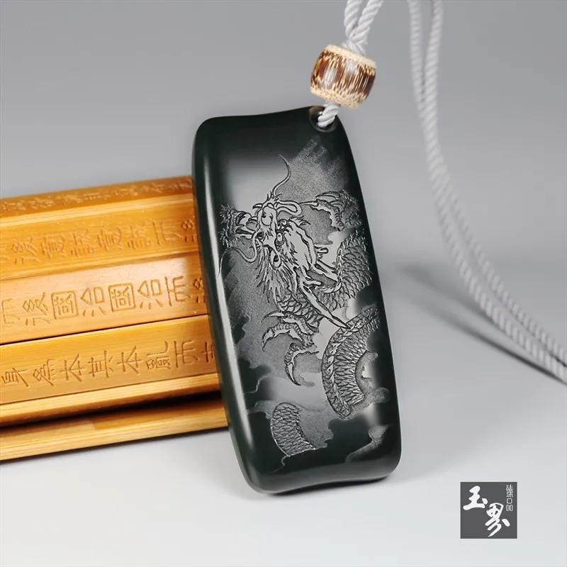 ▲ 黑青玉-陰雕蒼龍牌 | 玉器編號:167585