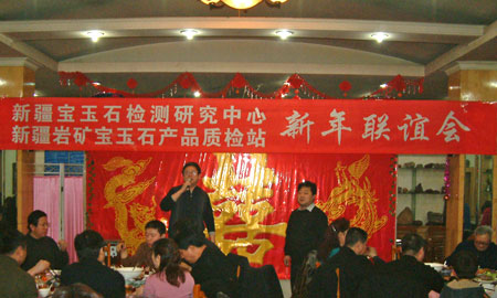2006年1月18日,新疆寶玉石檢測研究中心、新疆巖礦寶玉石產(chǎn)品質(zhì)檢站在寶地賓館舉行了新年聯(lián)誼會,來自珠寶玉器行業(yè)近百家企業(yè)參加了聯(lián)誼會。