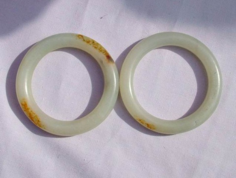 這是被當做古玉收藏的白玉手鐲,仿制“子料”制品,皮色作假。