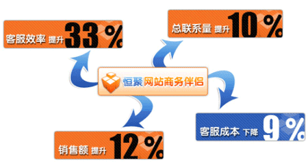 根據客戶的真實數據表明,使用恒聚網站伴侶一段時間后,網站的總聯系量提高10%,銷售額提高12%,客服成本降低9%,每次溝通的平均時間由8分鐘降為6分鐘,客服效率提高33%??蛻魧Υ私Y果非常滿意,并表示隨著訪客對網站伴侶的熟悉,使用效果還將越來越好。