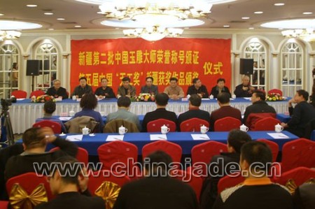新疆第二批中國玉雕大師榮譽稱號頒證儀式及第五界中國“天工獎”新疆獲獎作品頒獎儀式,于2006年12月16日在華凌飯店隆重舉行。
