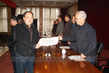 自治區寶協常務副會長李澤昌向新疆工藝美術大師頒證