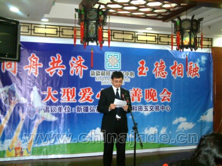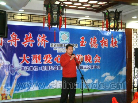 由新疆弘基集團、新疆和田玉交易中心倡議發起的《同舟共濟 玉德相融--大型愛心慈善晚會》,于2007年2月10日晚在益天洋商務飯店隆重舉行。