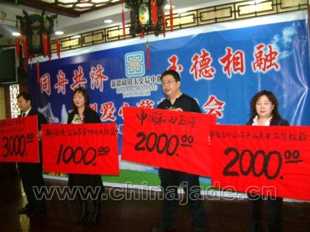 新疆和田玉交易中心商戶在晚會上以每桌集體的形式捐助了善款