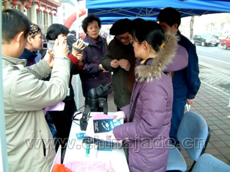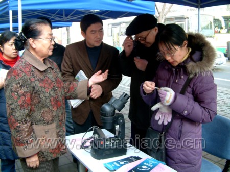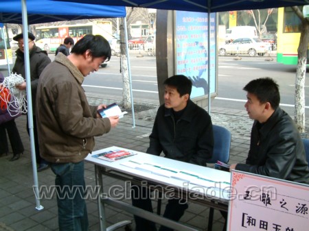 3月15日,雖然烏魯木齊還是瑟瑟寒風,但在新疆和田玉交易中心確另有一番熱烈氣象。中國和田玉網(wǎng)、新疆巖礦寶玉石產(chǎn)品質(zhì)量監(jiān)督檢驗站、新疆珠寶玉石首飾行業(yè)協(xié)會、新疆和田玉交易中心及入駐商戶在這里擺開咨詢臺,為來往的消費者提供關(guān)于和田玉知識的咨詢和鑒定的服務(wù)。