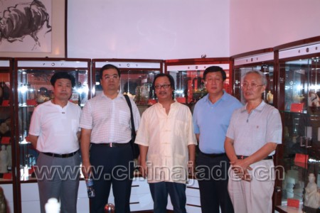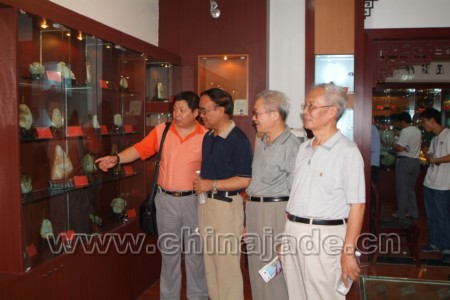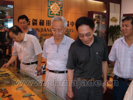 新疆地礦局副局長(zhǎng)朱立(右二)參觀玉雕展品