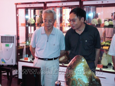 新疆寶協(xié)副會(huì)長(zhǎng)李澤昌陪同朱立局長(zhǎng)參觀參會(huì)玉雕作品