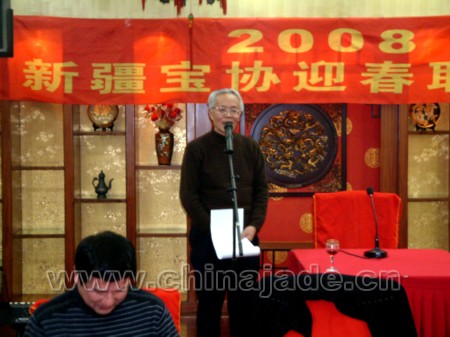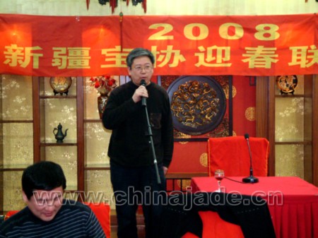 雪花獻(xiàn)瑞玉,綠酒添歡歌。2008年2月1日,烏魯木齊天香閣酒樓二樓宴會(huì)大廳,由新疆寶協(xié)主辦,新疆礦巖寶玉石質(zhì)監(jiān)站、新疆金銀飾品質(zhì)檢站、新疆和田玉交易中心、烏魯木齊錦蘭經(jīng)貿(mào)公司、新疆徠遠(yuǎn)玖德文化發(fā)展公司、新疆瑞玉德實(shí)業(yè)公司協(xié)辦的一年一度迎春聯(lián)誼會(huì)在喜慶祥和、節(jié)日濃濃的氣氛下召開。