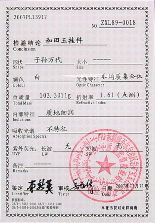(4)鑒定標簽,產品經過鑒定的標志,只有產品重量和鑒定編號。