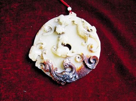 藏家程立的“五子拜佛”入選“十佳美玉”,他談起自己藏玉的歷程也是感慨良多。他開始玩玉器時因為不懂行,吃了不少明虧暗虧,最多時候一筆就搭進去數萬元。“有人用酸把劣質玉中雜質去掉,仿制純凈的好玉,這叫‘酸洗’;有人用白玻璃假冒白玉,以假充真;有人用染色的方式把一般的玉染綠,謊稱是翡翠;有人把玉埋進土里,或者縫到羊或狗的身子里,讓血滲透其中,冒充‘血沁’。這里頭‘貓膩’不少。”