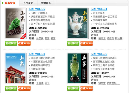 截至4月30日下午7點(diǎn)半,《玉界》電子雜志第五期在新浪雜志頻道的單日訪問量突破30萬次,這個數(shù)字超過了上期的月閱讀量。