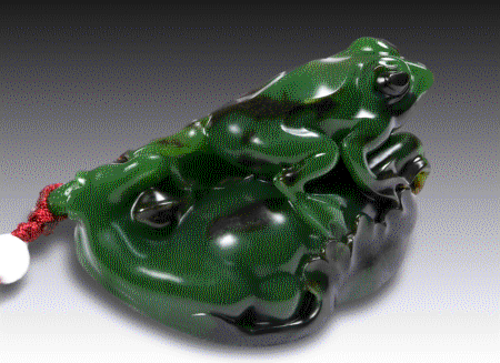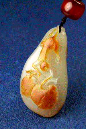 俏色巧用為玉雕琢工藝的一大特點,為玉雕界普遍應用。玉色以綠色為主,兼備黃、黑、紅、白等色。有湖水綠、蘋果綠、草綠及綠白等色。有的玉為雜色玉,紅、黃、墨、綠諸色聚于一體,色彩斑斕,河磨玉玉色為墨綠,外包褐黃色之玉皮。玉料豐富的顏色和玉質為制作中巧用俏色提供了良好的物質基礎,亦使玉制品精美、形象、生動逼真,給人栩栩如生、活靈活現的感覺,而使世人更加真愛。