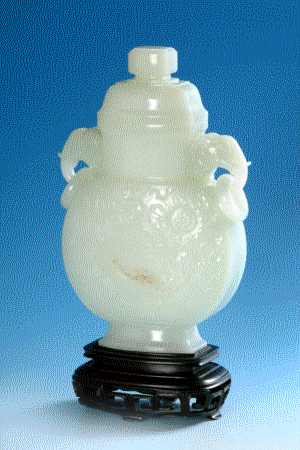 深浮雕:層次交叉多,立體感強。浮雕的圖案有兩大類:一類是傳統的各種變形紋樣如回型紋、雷紋、勾蓮紋等。一類為寫實圖案如花卉、草蟲、鳥獸、山水、人物及具象型的龍鳳、吉祥圖案等。各種變形的傳統動物紋樣使器皿古樸、莊嚴、厚重。植物圖案紋樣富麗輕巧。幾何紋樣使器皿穩定均衡。變形圖案紋樣常施在器皿的腹、頸及各種邊沿上。