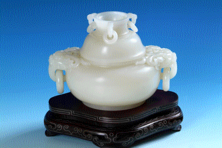 又稱“園身雕”,屬三維立體雕刻。前后左右各面均須雕出,觀賞其物不分正面、側面,可以從四周上下任何角度欣賞,器如實物,只是比例差異而已,有實在的體積。圓雕工藝應用最廣的品種是素活類和人物類。北玉圓雕工藝聞名全國,器身與器蓋比例合適,配件精致,修飾華麗、富貴。通體作品形同實用器物,然而卻是一件精致的工藝品。