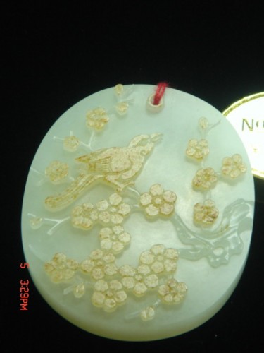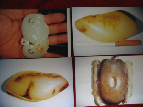 2008年5月30日,我市發生一起特大玉石盜竊案。犯罪嫌疑人盜走和田籽玉(150個左右)、和田玉雕件(150個左右,雕刻的圖形為佛、觀音等),像牙扳指(兩個)、壽山石印章(共四枚,清朝文物,分別雕刻有“一角富春山、安能酐患與寶貴、金石延年”等篆體字樣)。以上物品盜時分別裝在兩個包里(一個為粉紅色運動包,上有“PUMA” 字樣,另一個為藏藍色的運動包,請各玉石銷售、收、加工點接此協查通報后,對以上被盜物品進行布控。(后附部分被盜物品照片)