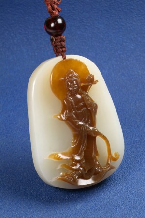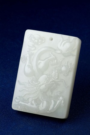 近年來,佩玉已漸漸成為首飾時尚,深為廣大消費者所喜愛。在玉佩中往往運用人物、花鳥、走獸、器物等形象和一些吉祥文字等中國傳統(tǒng)圖案造型,以民間諺語、吉語及神話故事為題材,通過借喻、比擬、雙關(guān)、象征及諧音等表現(xiàn)手法,構(gòu)成“一句吉語一幅圖案”的美術(shù)表現(xiàn)形式,反映人們對美好生活的追求向往,充分體現(xiàn)了玉石文化的精髓。