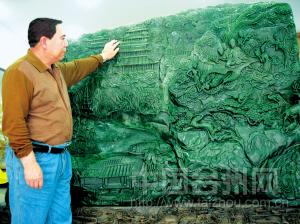 昨天下午,《天堂》主人、設計師嵐人告訴記者,這塊罕見的新疆和田碧玉,是2004年一牧羊人在戈壁灘中發(fā)現(xiàn)并挖掘出來的。當嵐人從新疆的朋友那里得知消息后,就立即趕到新疆,從牧羊人手中花巨資買下了這塊玉。經過構思,他決定進行大型玉雕創(chuàng)作,把天堂和人間的美景交相輝映,鶴鹿同春天地相間,寓意人間天堂之美。