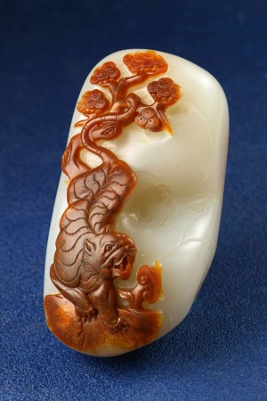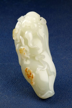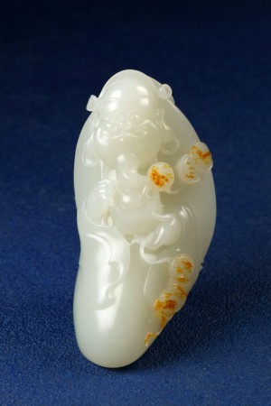 把玩件的工藝講究意境,材料一般選用上乘的子料,隨其自然形狀而構(gòu)思造型,并且有皮的都會留皮作俏色用。一是為了增強(qiáng)動感,二則說明了玉料的高昂價值。