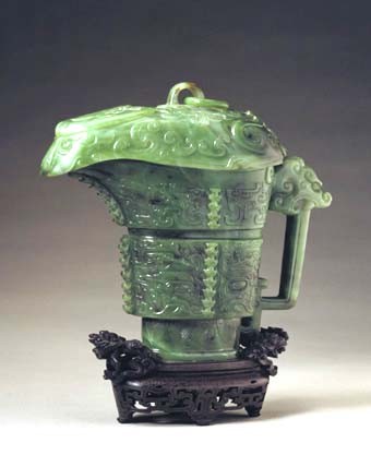 清代的宮廷玉器制作程序較為復(fù)雜,特別是一些形制較大的器物。首先要經(jīng)過選料,畫樣,然后鋸鉆,做坯,飾紋,拋光等。有些玉器還要刻款,在具體的操作中將傳統(tǒng)的陰刻、陽線、浮雕、鏤雕技藝發(fā)揮得淋漓盡致。